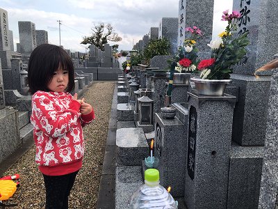 休みの日、子供達と出掛ける先はない時は、お墓参りです。