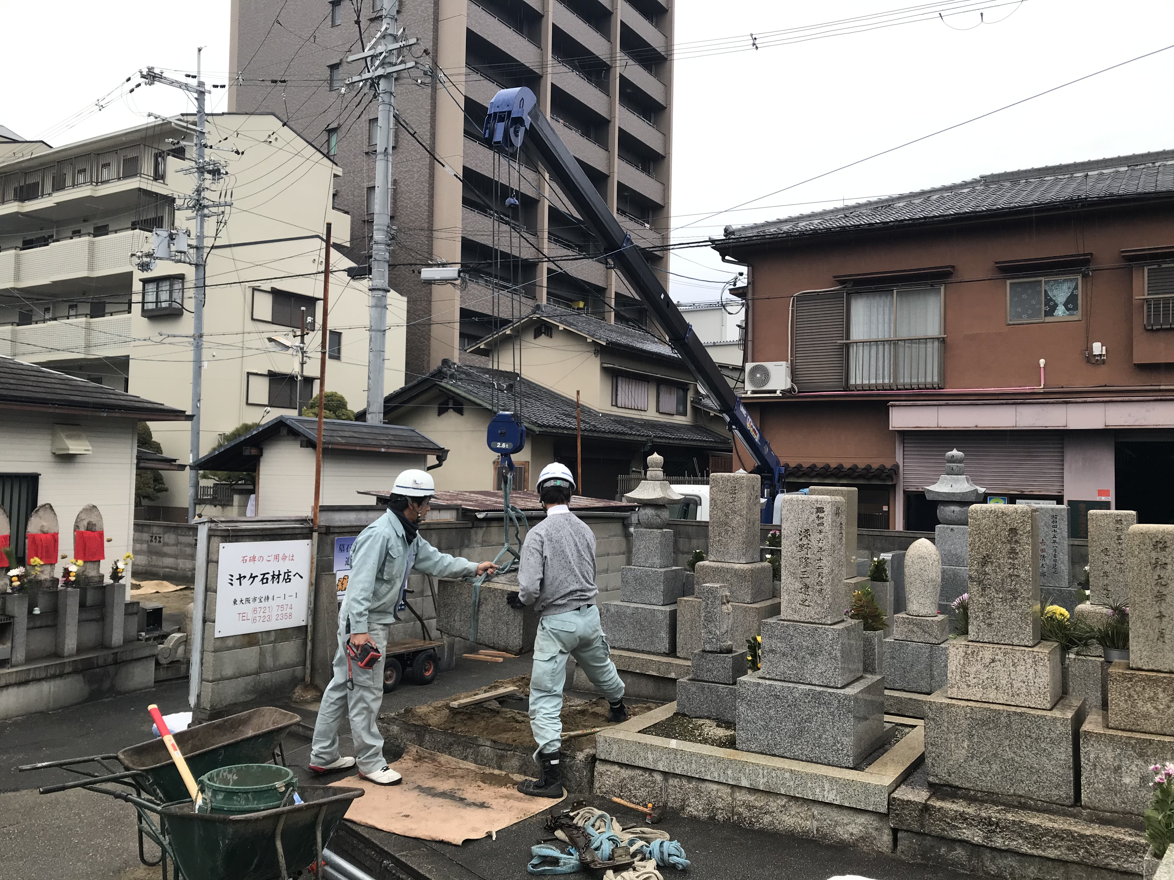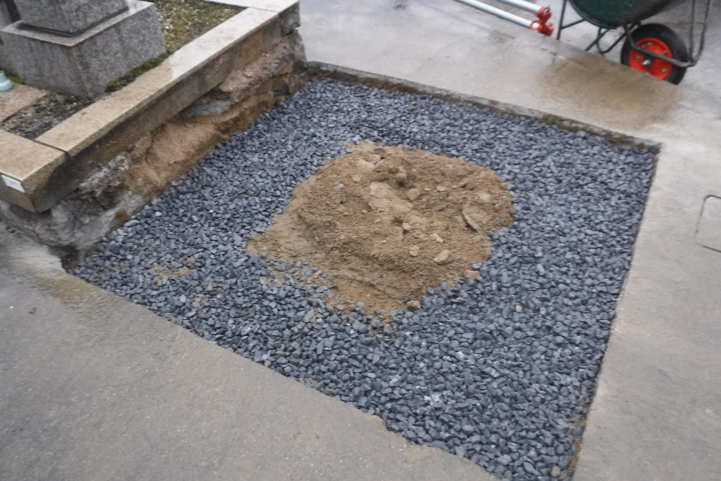 通路が狭めの墓地ですが、今回は入口近所の工事がしやすいところ。