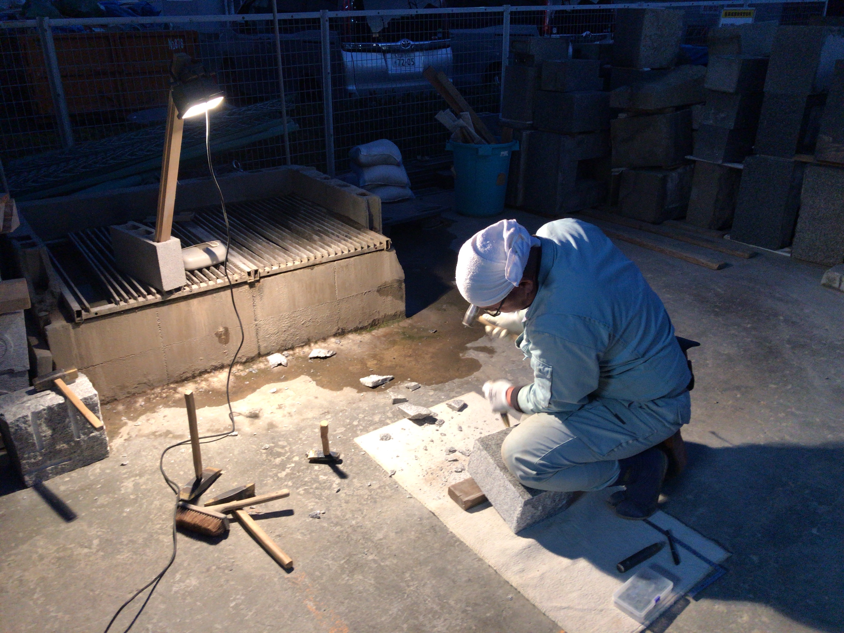 機械に頼らず石を加工できるようになる為に、ライトを照らして頑張っています。