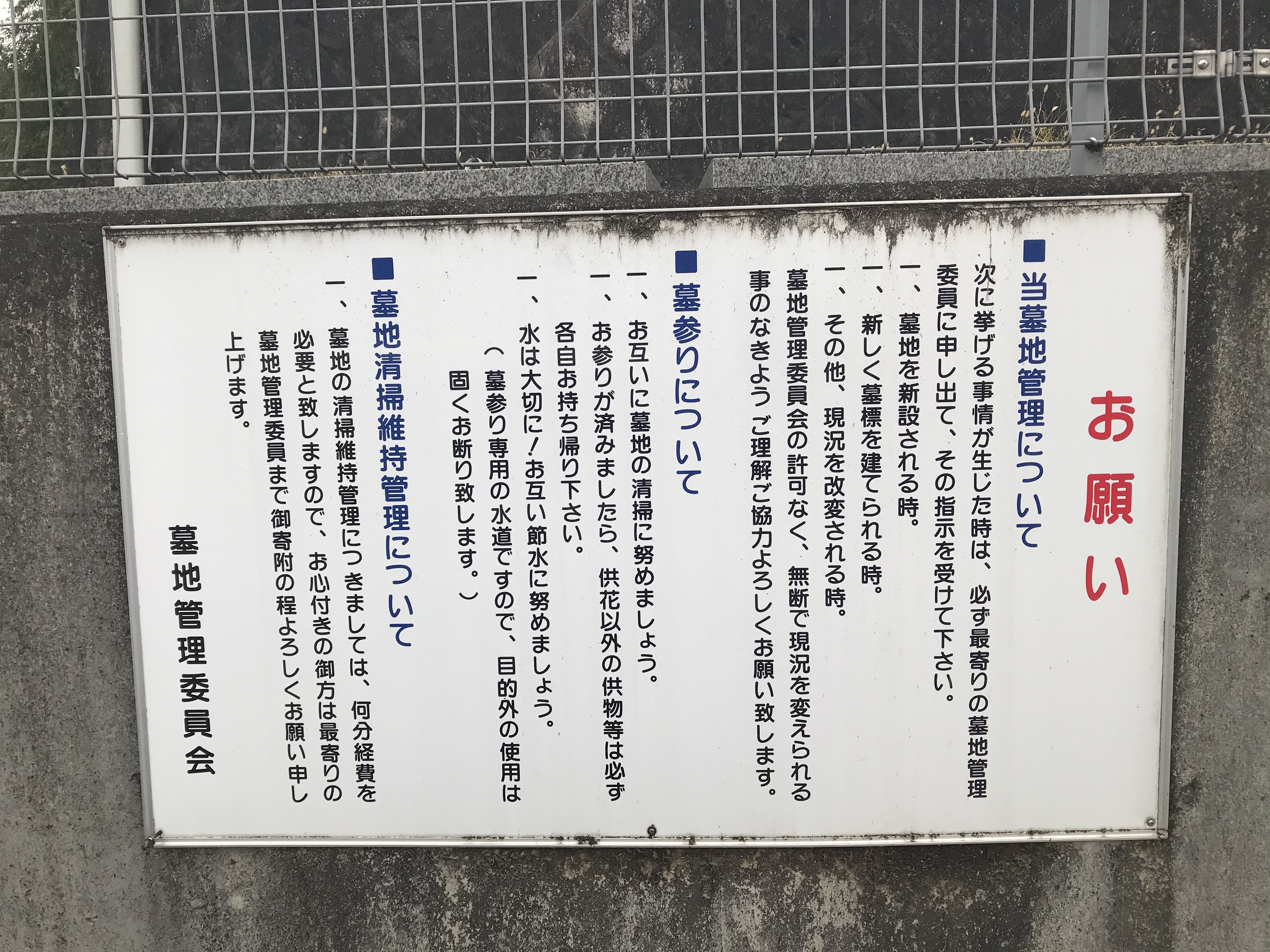 墓地管理委員会の許可なく、無断で現況を変えられる事のなきようご理解ご協力よろしくお願い致します。
