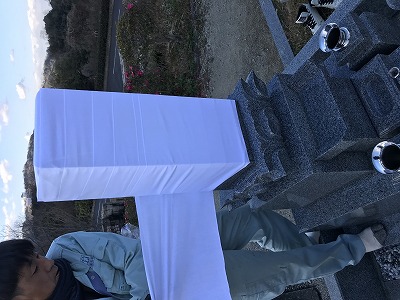 お墓を建立した直後は、墓石をサラシで巻きます。