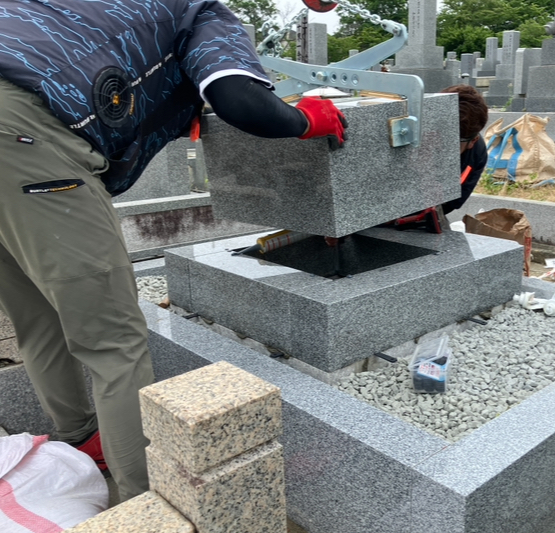 理想のお墓のイメージができあがったら、東大阪市の本社にある工場にてお墓を作り据付工事を行います。