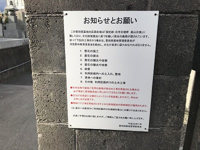 ●石材店様や墓地ご利用の皆様が該当の工事を実施される場合は、必ず事前に管理委員会に申し出てくださるようお願い致します。