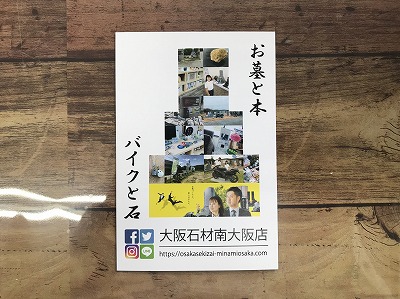 一発で大阪石材南大阪店を表した内容です。デザインはお墓女子の宮原ちゃん監修で、作成はお店のパートナーさんです。