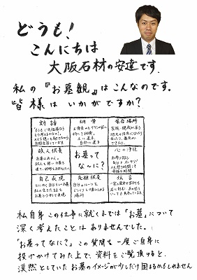 お墓の打ち合わせをする前に、少しでも私自身をわかって頂きたくて、「私のお墓観」というのを作ってお渡ししています、、