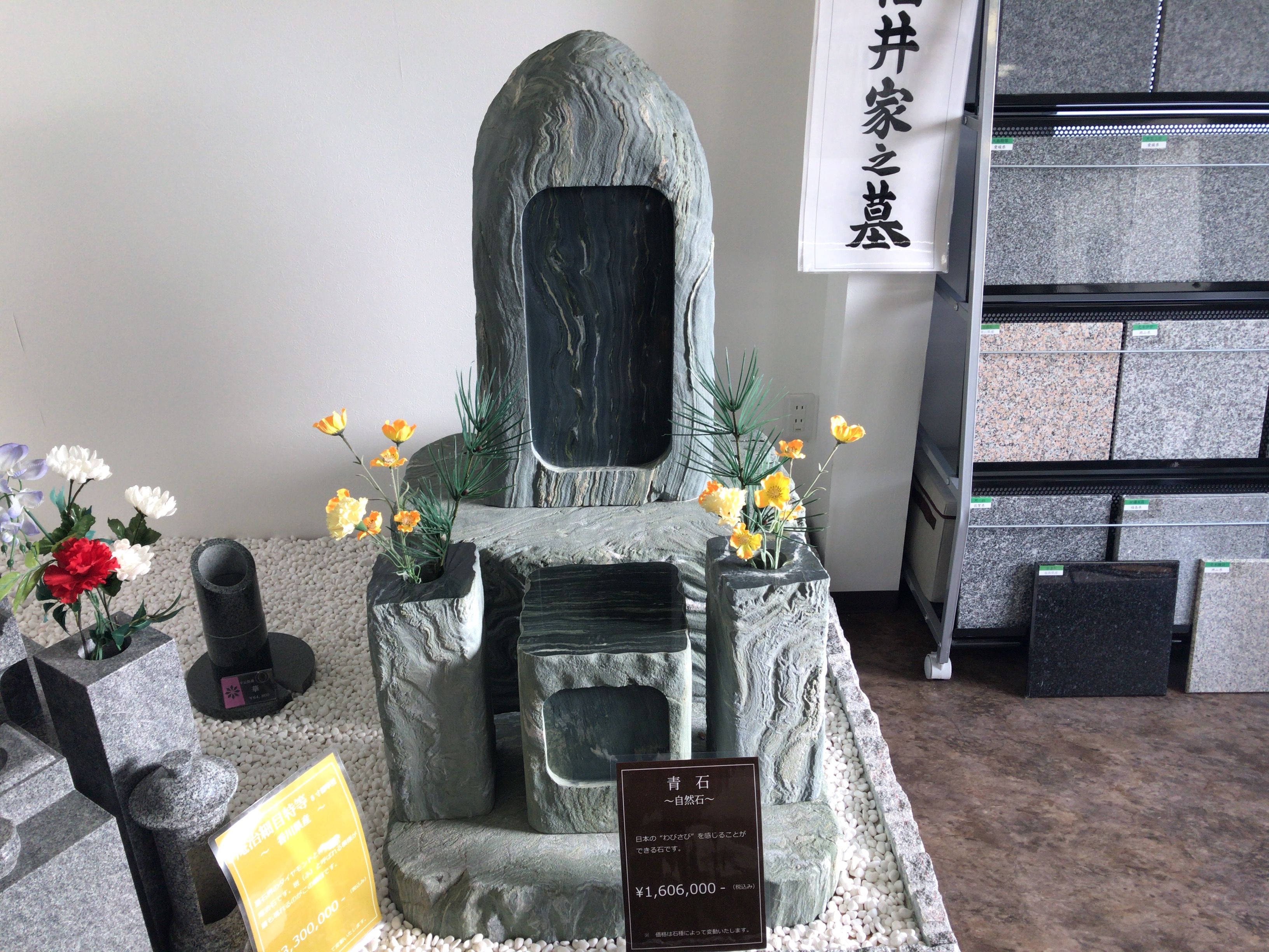 そして、青石の墓石も大阪石材南大阪店に展示しています。