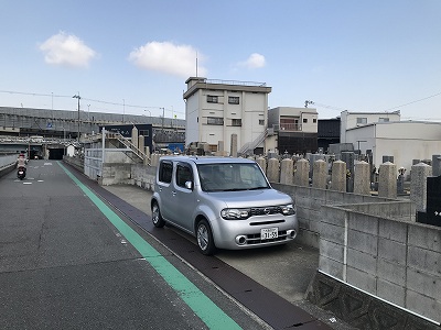駐車場は墓地沿いにありまして、このように停めます。