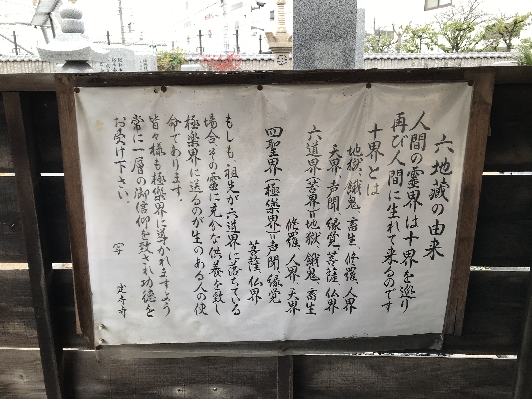 墓地内を見学させて頂きますと、こんな感じです。六地蔵さんの由来が書かれています。これは必見!