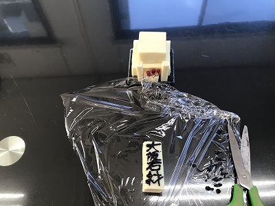 竿石チョコを解体して、字を書きます。そして、チョコを据え直します。