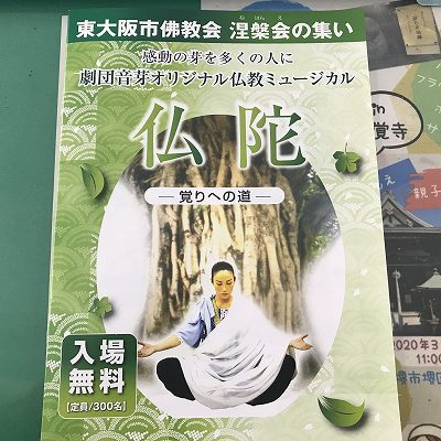 先日は富田林を飛び出して、私の地元東大阪市八戸ノ里にて、東大阪市仏教会主催の仏教ミュージカルの受付をしました!