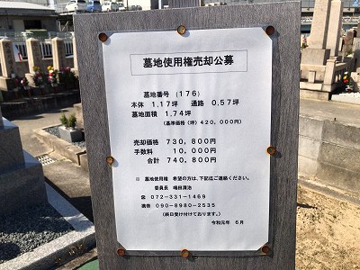 松原市にある大堀共同墓地に空き区画がありますのでご紹介できます。